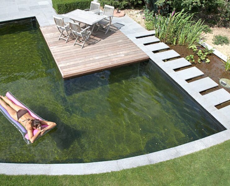 RENOLIT offers its ‘Natural Pool’ collection of reinforced membranes specifically developed to be used on ‘natural’ or ‘bio’ swimming pools and ponds. Manufactured without biocides or fungicides, this product is completely compatible and safe to use with plants and aquatic life. The ‘Natural Pool’ product is a non-toxic polyvinyl chloride (PVC) pool membrane created to help builders and landscape designers easily offer this trending ‘natural swimming pool’ to environmentally conscious consumers.