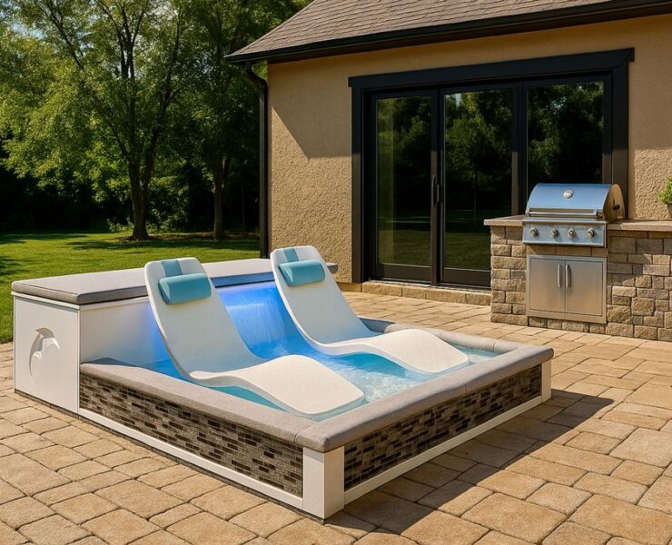 BSquared Pools offers the new Free Standing Sunledge, a patent-pending feature that can be added to any outdoor living space, giving consumers the benefits of a sun ledge without the need for a pool! Manufactured from the same pool-strength polypropylene panels used in its pool kits, this ‘plug-n-play’ solution can be used independent-of or in-combination-with a pool. Interior measures 72” x 82” with 235 gallons of and a gentle overflow waterfall. Gentle overflow waterfall. Accommodates various pool loungers. Made in the USA.