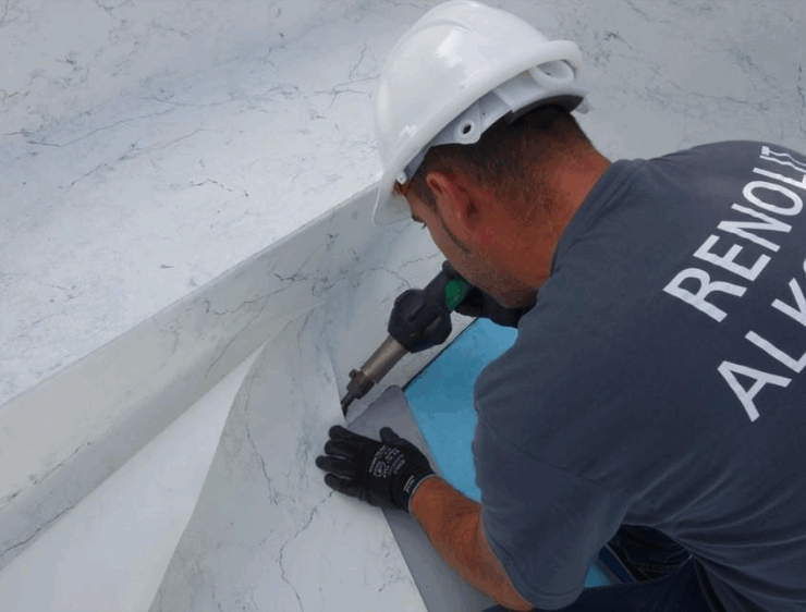 Renolit makes RENOLIT SOLID, a reinforced PVC membrane created to renovate and waterproof decks on both residential pools as well as in aquatic facilities. This 80-mil thick membrane upgrades decks to make them waterproof and slip-resistant for safety, the company says. A “solid” solution for common deck problems including cracks, chips, peeling paint and more. Provides long-term ease of maintenance.
